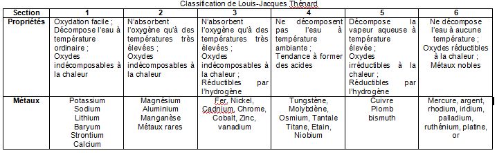 ![Classification de Louis-Jacques Thénard []](https://petiteshistoiresdessciences.com/wp-content/uploads/2015/04/classement-thc3a9nard.jpg?w=300)