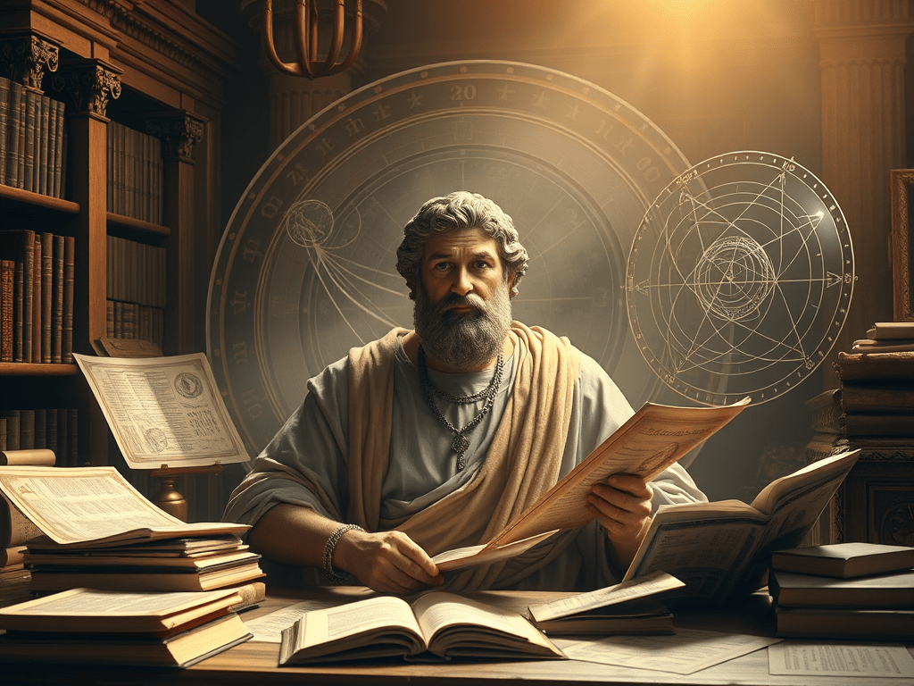 Ptolémée propose une théorie géométrique pour décrire le mouvement des astres. Seul ouvrage de Ptolémée qui nous soit parvenu, ses épicycles et ses tables astronomiques seront une référence pour les siècles à venir.