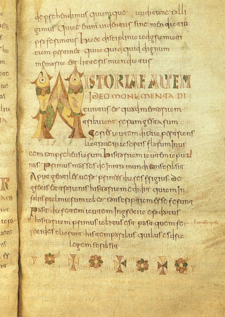 Manuscrit MS4856 des Étymologies d’Isidore de Séville en écriture onciale (fin du VIIIe siècle, Bibl. Royale Albert Ier, Bruxelles).