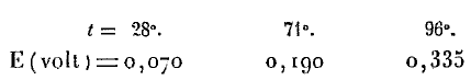 Ses résultats montrent que sans air, la f.é.m. augmente avec la température.